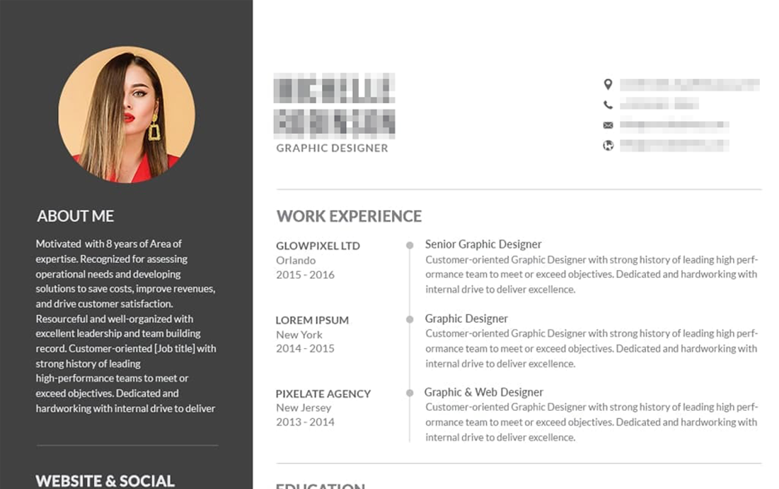Vista previa del CV original y censura de los datos personales